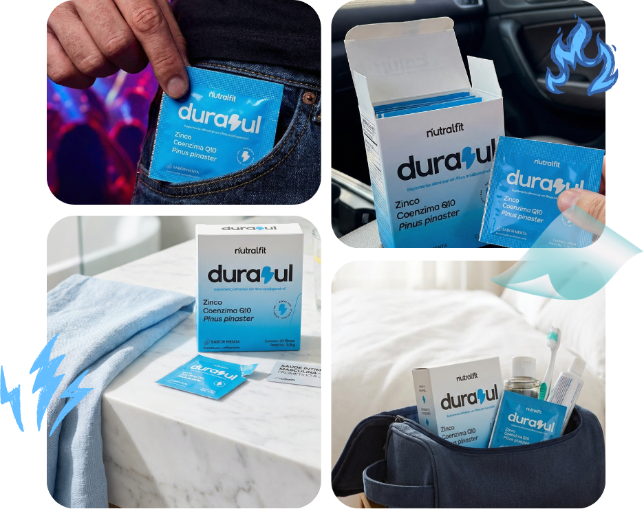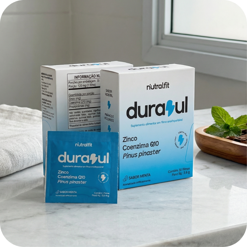 Durazul é um suplemento masculino em formato de fita adesiva para a língua, desenvolvido para apoiar a libido, o desempenho sexual e a ereção de forma prática e eficaz.